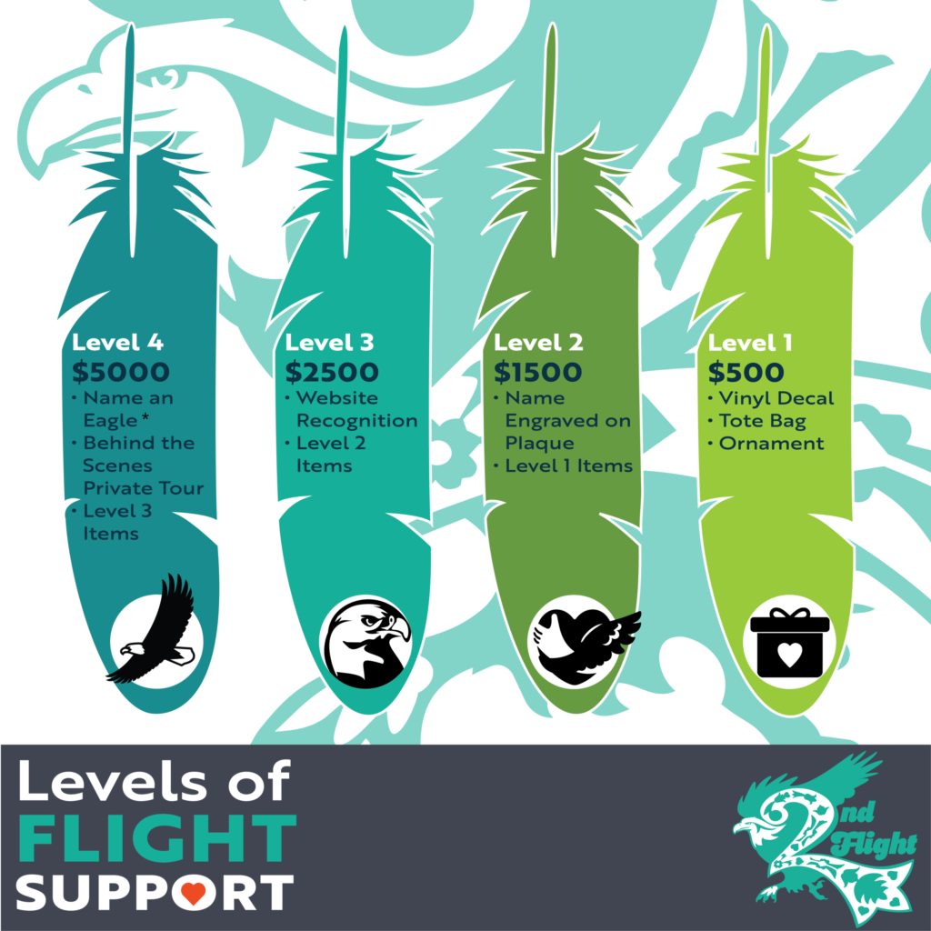 The Second Flight Care Initiative includes a range of contribution packages, and we gladly accept gifts in any amount. Every contribution helps us move us closer to completing this project to help save more eagles.