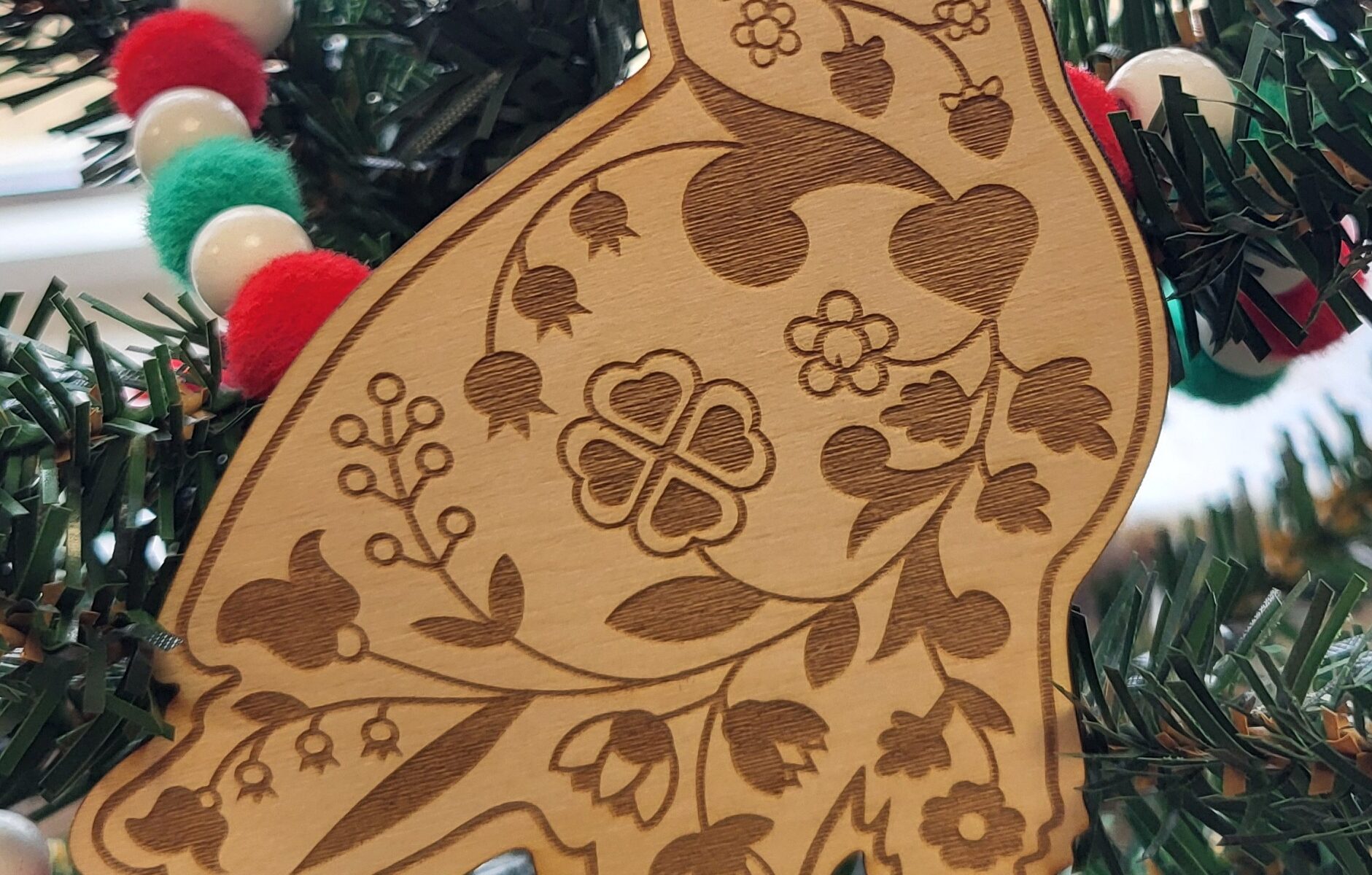 Celebrate the season with our exclusive ornament for our 2nd annual Christmas Ornament Fundraiser! Each piece is one-of-a-kind as it is uniquely crafted from an ~4.5″ basswood using a design that was created exclusively for the ornament. The front features traditional floral patterns while the back has the GSEH logo and year. Supplies are limited, and once sold out, these ornaments will not be restocked—don’t miss your chance to own a truly unique keepsake! Slight variations from the picture regarding wood grain and color may happen due to the materials being used and the ribbon color may vary.